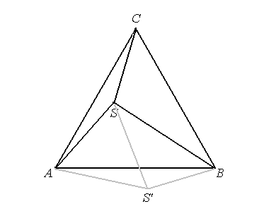 Długość odcinka AS\' jest równa długości odcinka AS, kąt SAS\' ma miarę 60°, stąd trójkąt SAS\' jest równoboczny o boku długości 8 km.