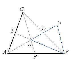 Pole trójkąta BSG równe jest polu trójkąta ASB, które równe jest pola ABC. Stąd pole trójkąta utworzonego ze środkowych trójkąta ABC równe jest pola trójkąta ABC.
