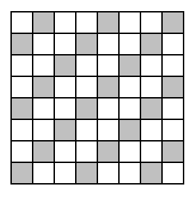 Jeśli pomalujemy co trzecie pole szachownicy, to otrzymamy 22 pola zacieniowane. Możemy to zrobić na dwa sposoby (rysunki powyżej). Do pokrycia kamieniami 3×1 szachownicy z wyciętym polem potrzeba 21 kamieni, przykryją więc one 21 pól zacieniowanych. Jeśli usuniemy pole białe, szachownicy bez tego pola nie da się pokryć.