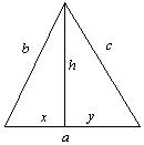 Trójkąt o obwodzie 50 cm podzielono za pomocą wysokości na dwa trójkąty o obwodach 30 cm i 36 cm. Jaka jest wysokośc trójkąta?