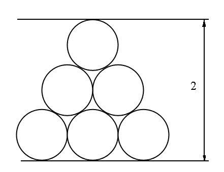 Zadanie 211 Rozwiązanie Z sześciu jednakowych okręgów ułożono piramidę o wysokości 2. Ile wynosi promień okręgu?