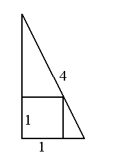 Zadanie 285 Rozwiązanie W trójkąt prostokątny o przeciwprostokątnej 4 wpisano kwadrat o boku 1 tak jak na rysunku. Jaką długość ma dłuższa przyprostokątna?